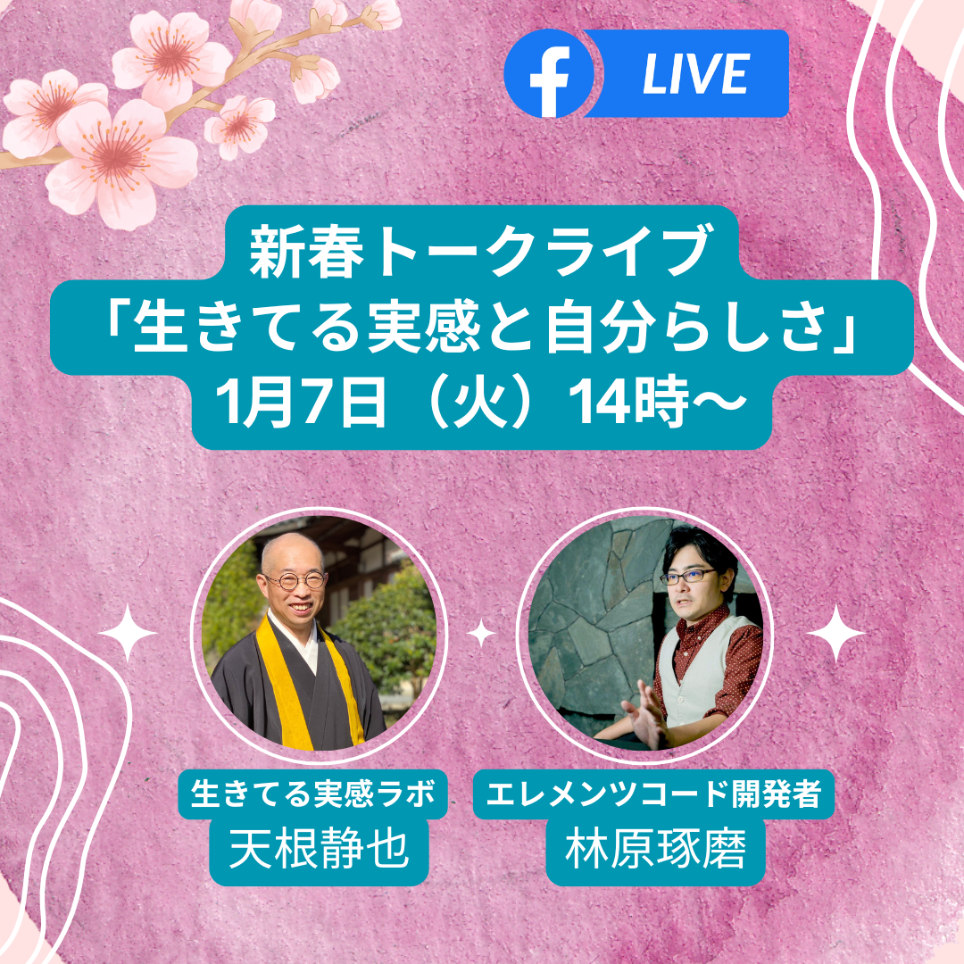 生きてる実感ラボラトリーの記念すべき第1回目のトークライブは、エレメンツコードの開発者の林原琢磨さんと行います。